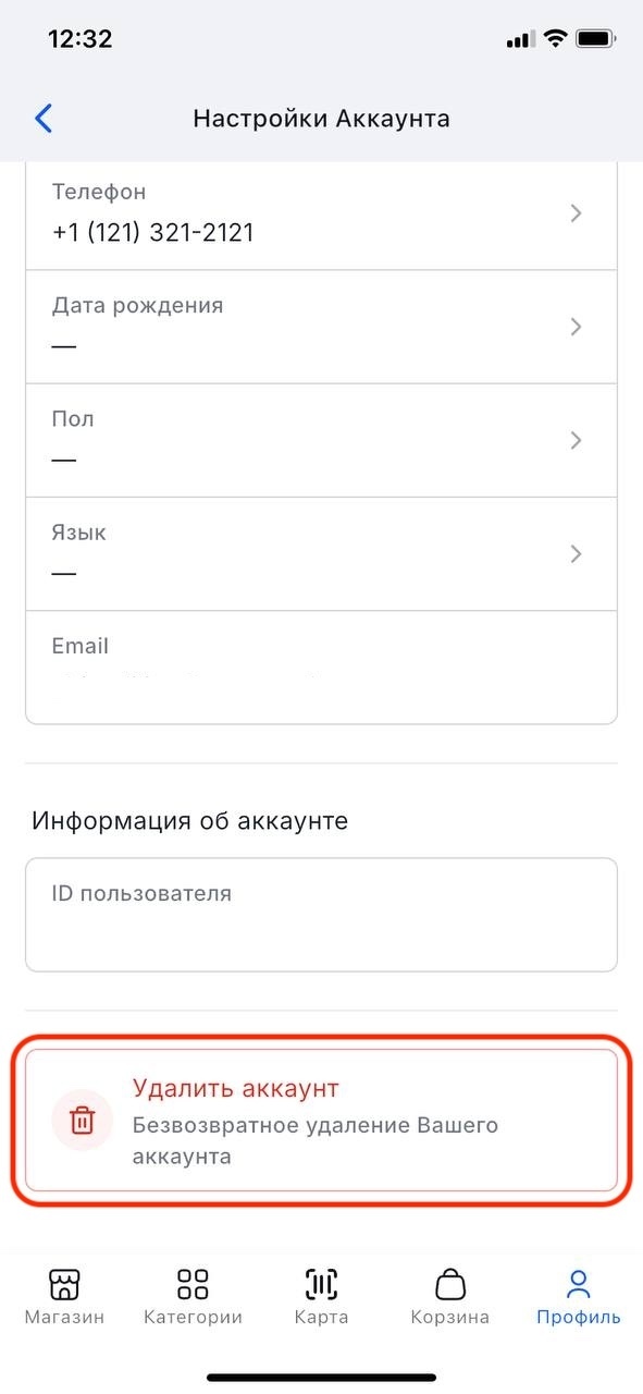 Возможность для конечного пользователя окончательно удалить свой личный аккаунт.