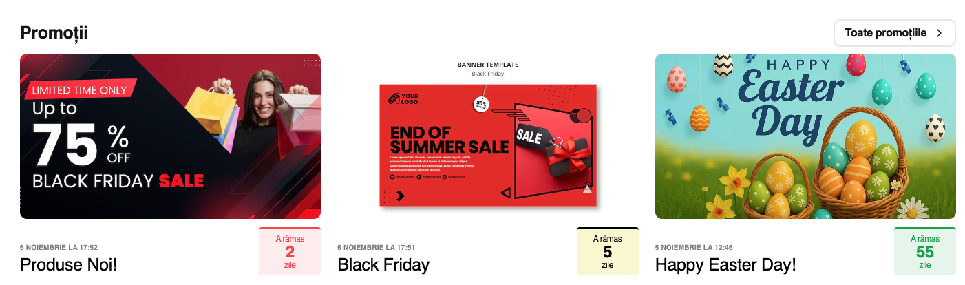 Numărătoare inversă pentru promoții pentru a evidenția durata acestora și a crea un sentiment de urgență care stimulează conversiile.
