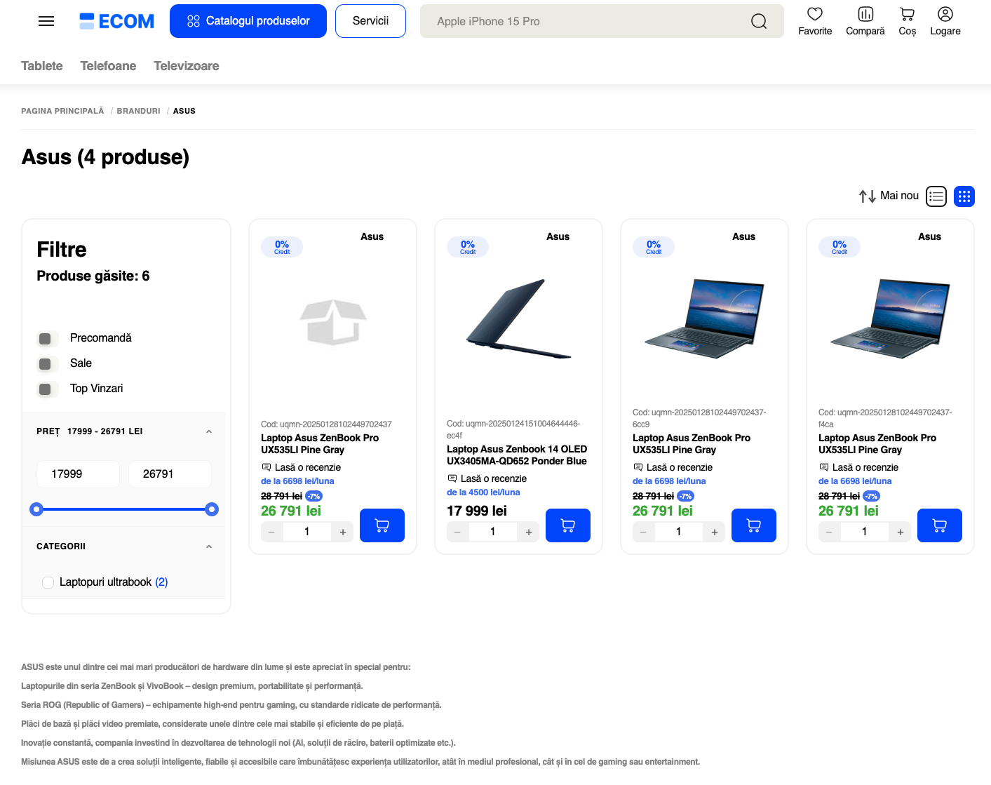 Posibilitatea de a adăuga descriere pentru Brand pentru a oferi context și informații relevante despre fiecare brand, consolidând încrederea utilizatorilor.