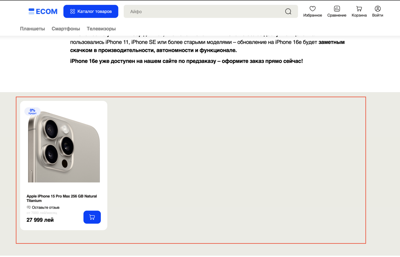 В мобильной версии сайта цена и кнопка «В корзину» закреплены в нижней части экрана. Это удобно для постоянного контроля цены и облегчает принятие решения о покупке.