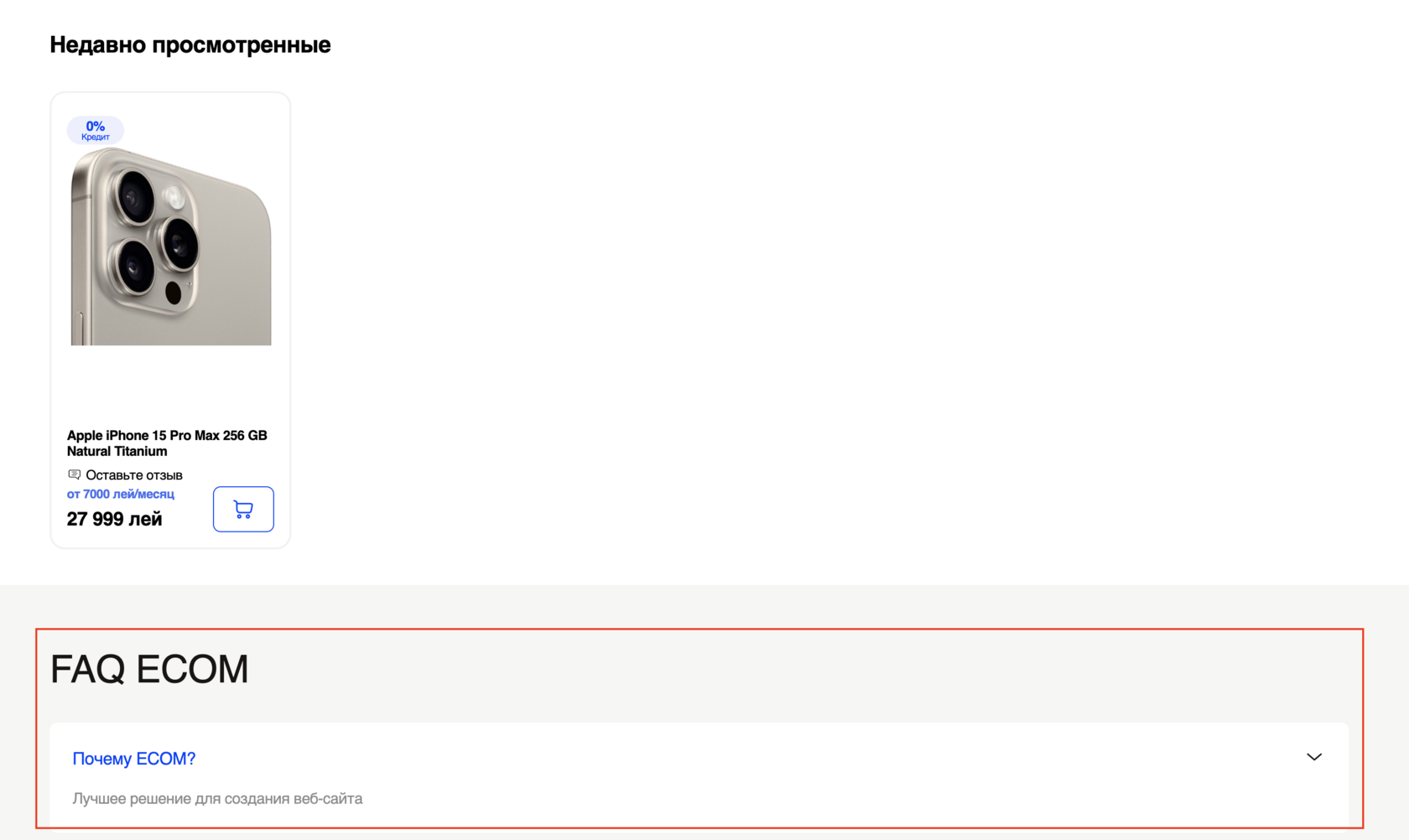 Модуль FAQ на странице продукта, чтобы сразу отвечать на часто задаваемые вопросы клиентов.