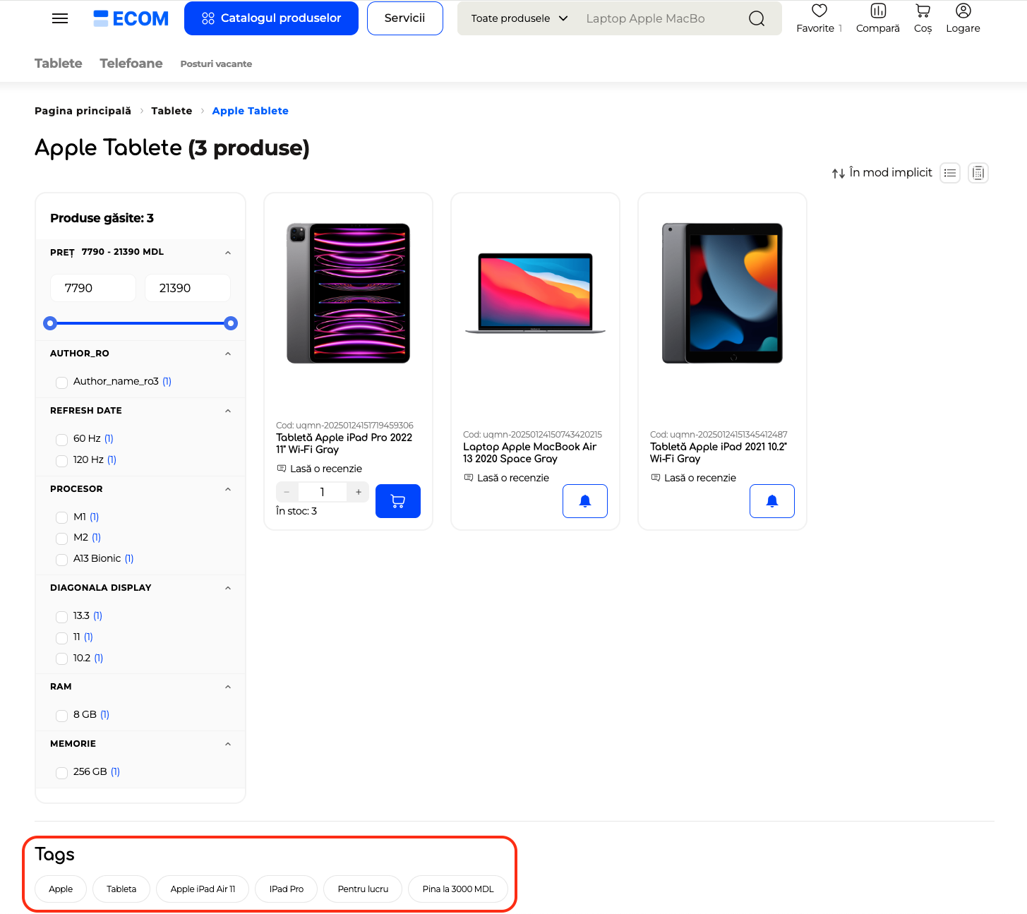 A fost implementată afișarea listei de tag-uri relevante pentru fiecare categorie, cu scopul de a îmbunătăți structura semantică a paginii și de a susține optimizarea SEO prin extinderea acoperirii cuvintelor-cheie.