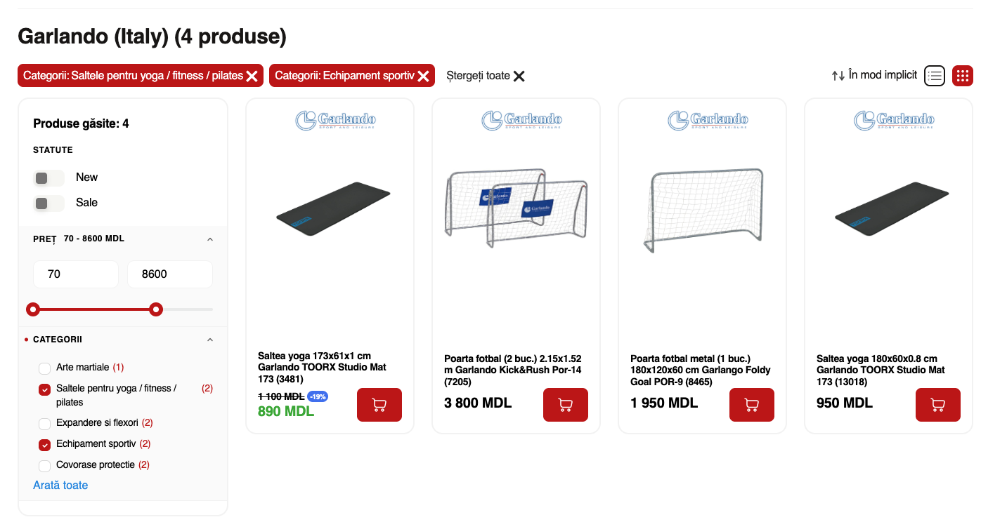 Am implementat afișarea filtrelor selectate de utilizator direct în pagină, iar acestea sunt acum reflectate și în URL. Astfel, navigarea devine mai clară și mai intuitivă, iar linkurile pot fi distribuite sau accesate ulterior cu filtrele deja aplicate.