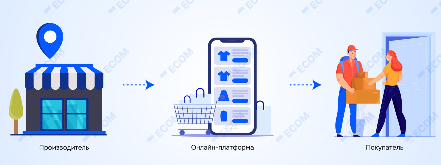 Производитель → Поставщик → Ритейл → Онлайн-магазин → Покупатель