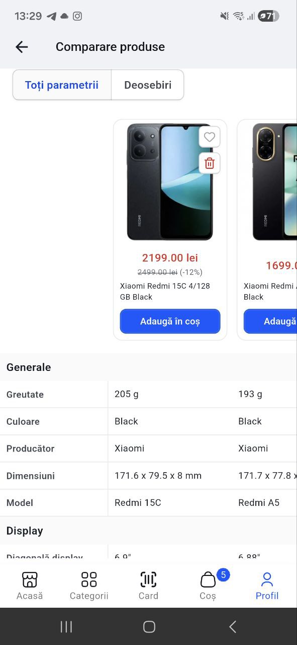 ⚖ Compararea produselor