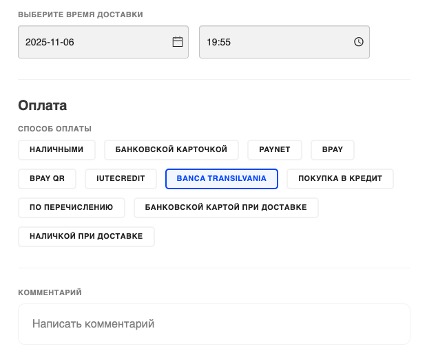 Возможность оплаты заказов онлайн через Banca Transilvania (Ro), чтобы предоставить клиентам безопасный и быстрый способ онлайн-оплаты в соответствии с местными банковскими стандартами.