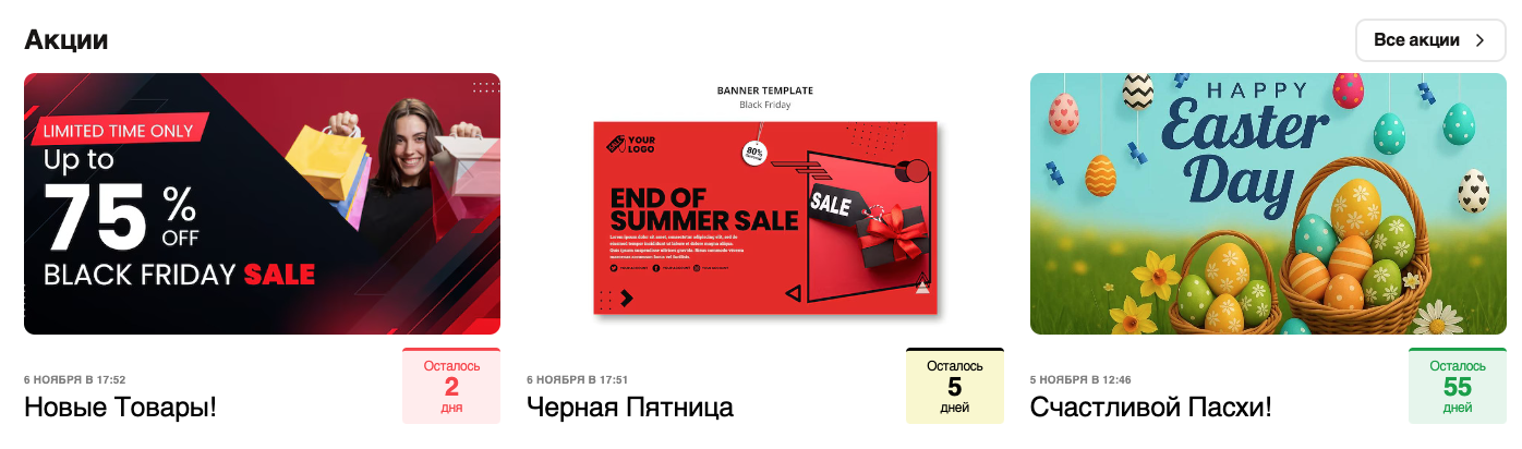 Обратный отсчет для промоакций, чтобы подчеркнуть их продолжительность и создать ощущение срочности, которое стимулирует конверсии.